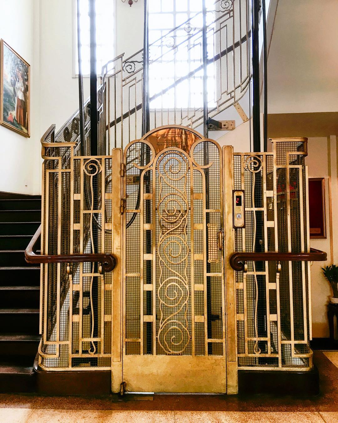 Chiếc thang máy có niên đại từ năm 1932. Hiện ở Việt Nam chỉ còn 2 cái: một ở Du Parc Hotel và một ở Bảo tàng mỹ thuật Sài Gòn. @pate.le